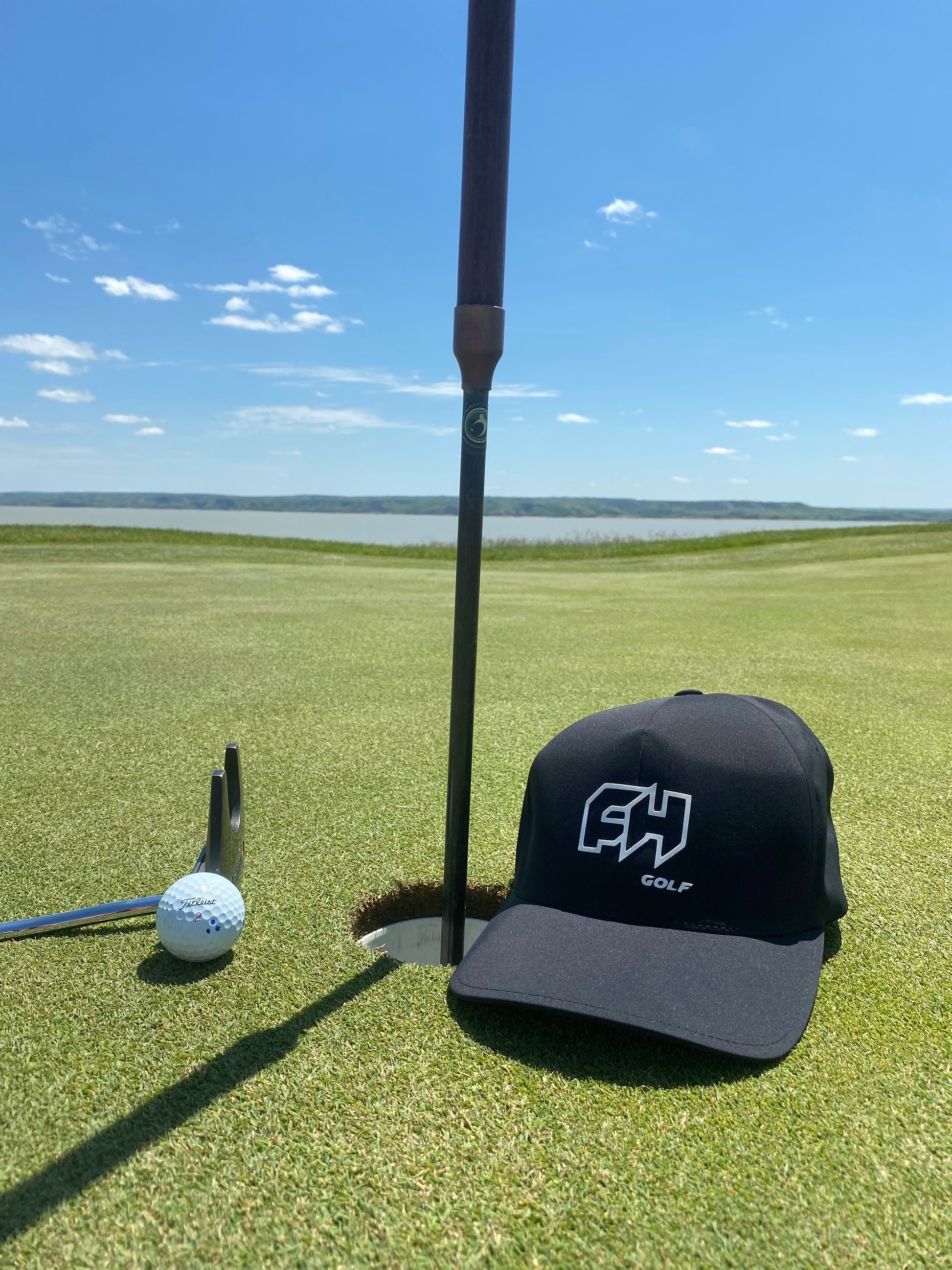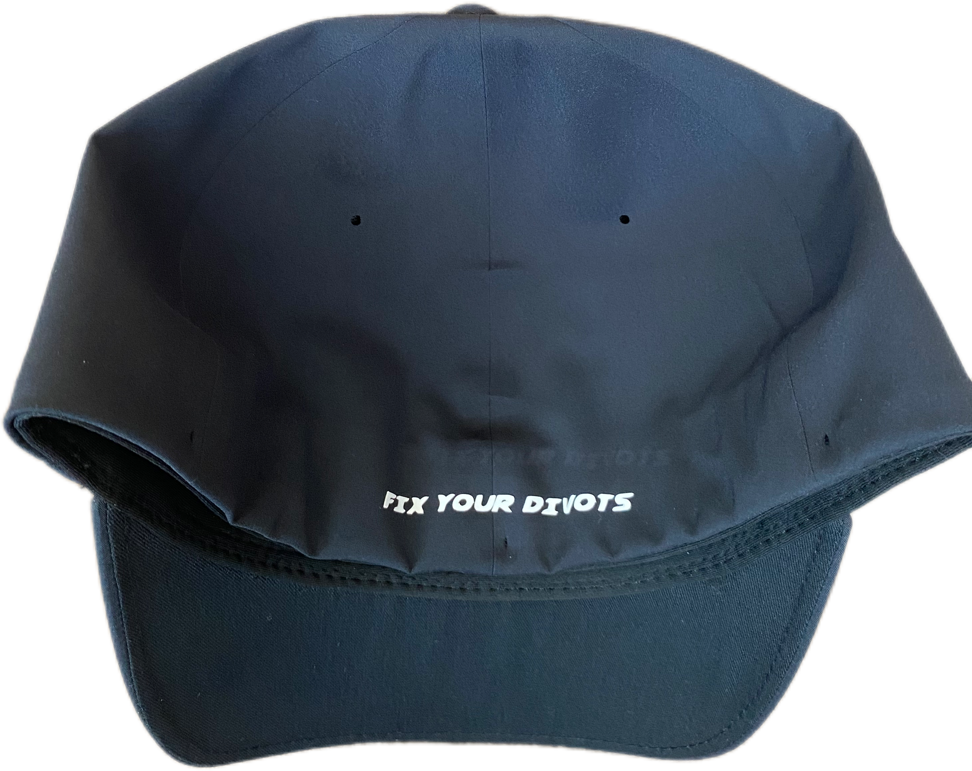 This flexfit is light and sharp with a black logo and the same "Fix Your Divots" message loud and proud on the back edge just like the White delta.