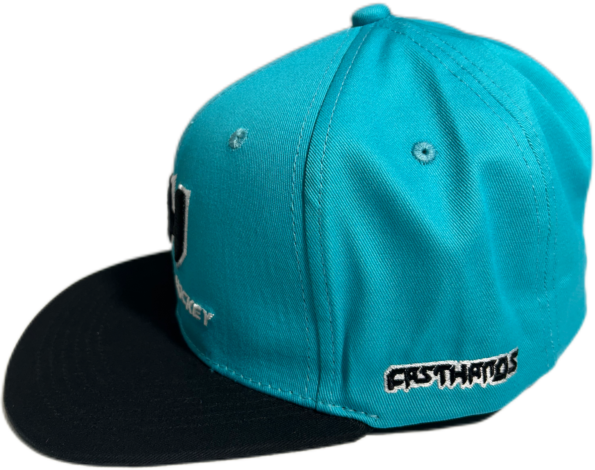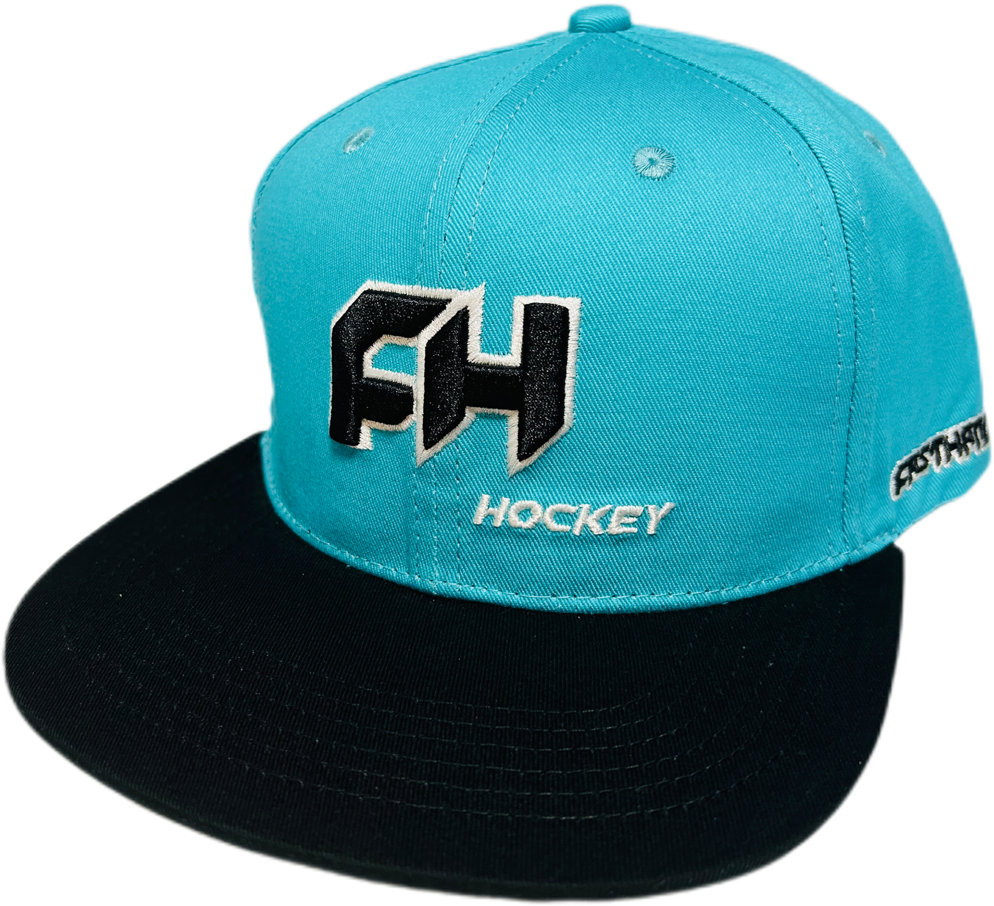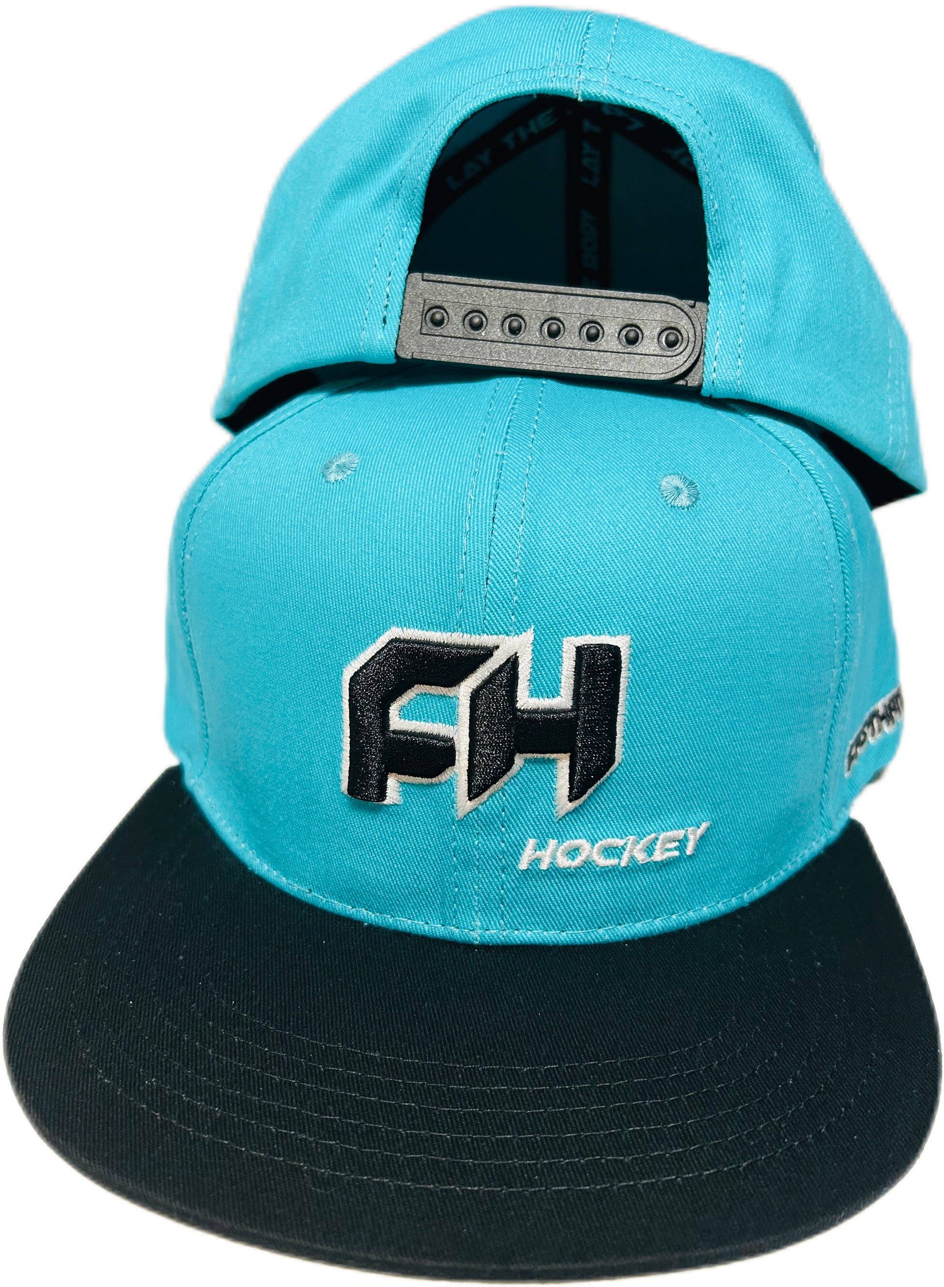 Another flashy addition to the New FH Hockey hat lineup is our sharks-inspired teal and black one-size-fits-all snapback.